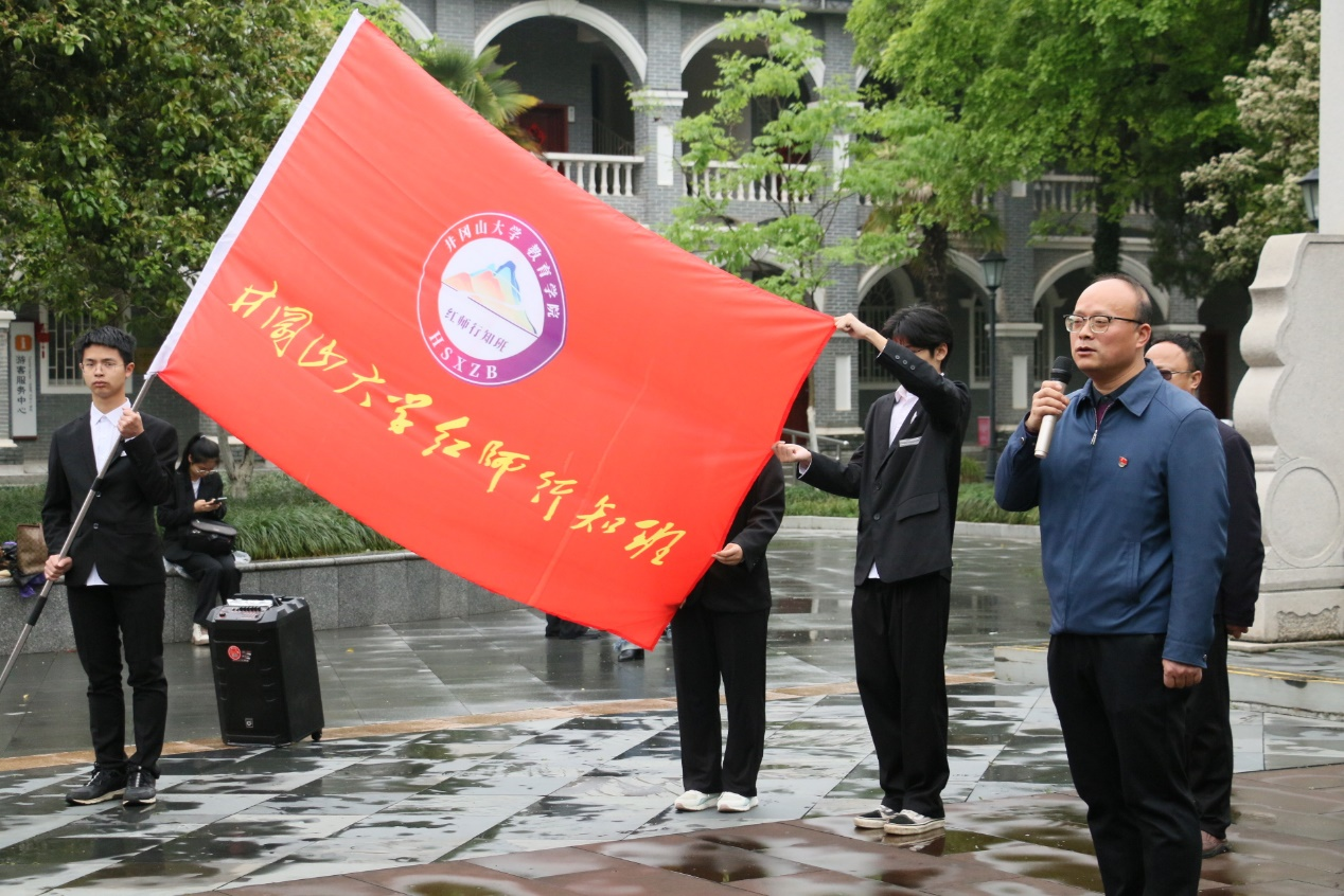 图3:院党委书记曾学锋为红师行知班授旗并讲话