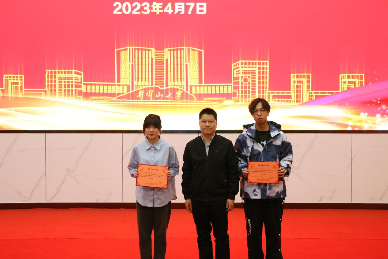 图4:校长助理张赫教授为一等奖获得者颁奖