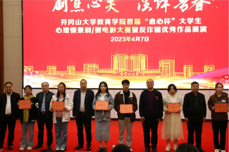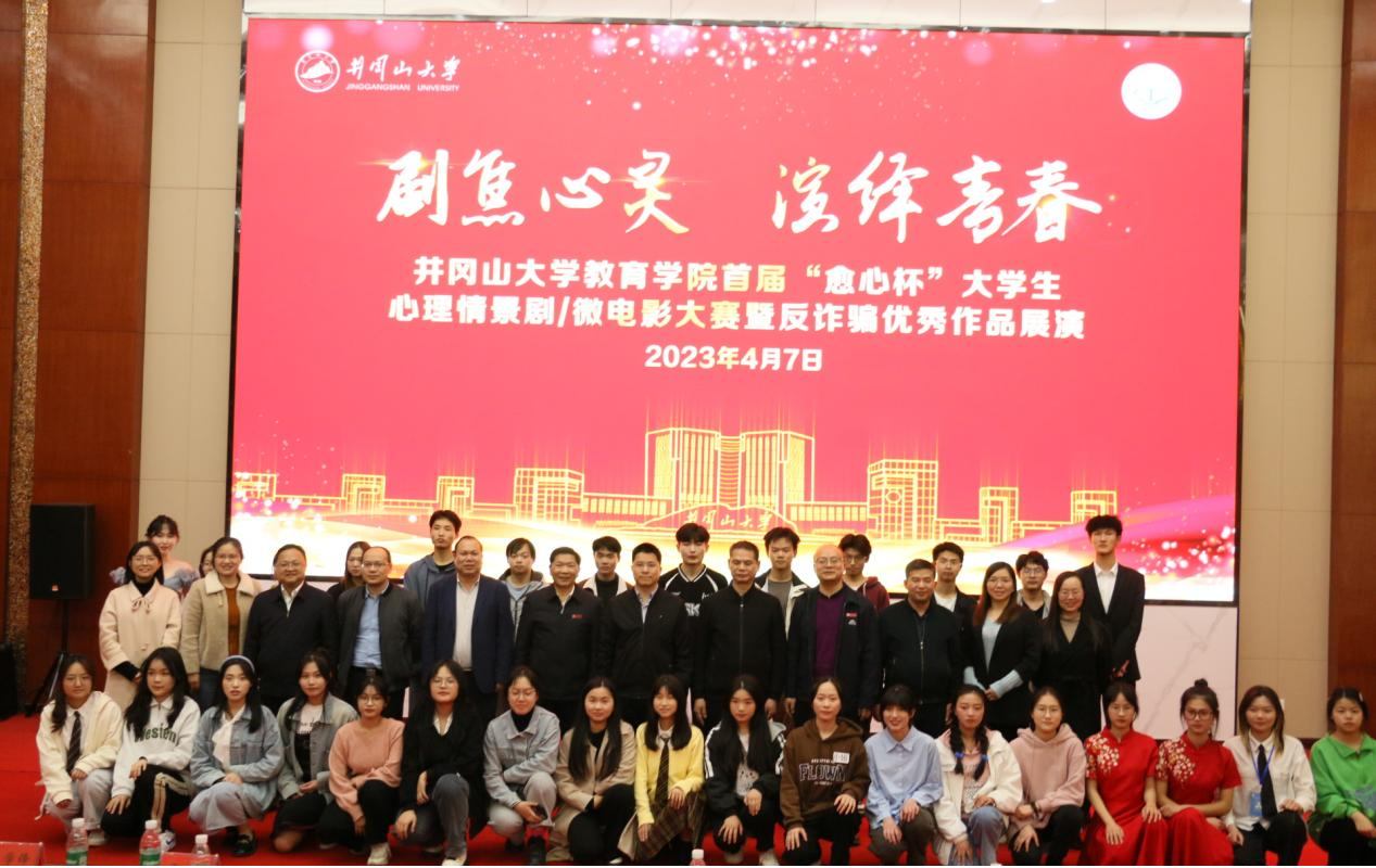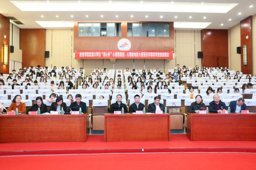 为探索创新我院大学生心理健康教育方式,提升校园心理健康教育的针对性和实效性,增强新时代大学生心理健康意识和能力,4月7日晚,由教育学院主办的“‘剧’焦心灵 演绎青春”为主题的首届“愈心杯”大学生心理情景剧和心理微电影大赛在新图书馆北一楼报告厅成功举行。校长助理张赫、校学生工作处处长毛金文、校保卫处处长黄赣生、校团委书记肖晓和学院党委书记曾学锋、院长胡忠光、副书记周光培、副院长梁尔铭、于文军应邀出席现场观看比赛。校心理健康教育与咨询中心主任戴益信,学院应用心理学专业曾会珍、占丽娟及专职辅导员余树英、胡婷五位老师担任此次大赛评委。我院各班级心理委员和学生代表共200余人观看了此次比赛。