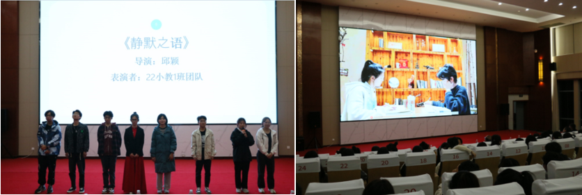 经过近2个半小时的激烈角逐,21小教2班柳淑灿团队的情景剧《破茧》与22小教1班邱颖团队的微电影《静默之语》荣获本次大赛的一等奖,22心理班宋婷团队的情景剧《寻,不循》、21心理班王宇翔团队的微电影《白色画笔》以及22心理班陈令夏团队的微电影《内卷》荣获本次大赛的二等奖,22小教3班朱运钰团队的情景剧《小小的力量》和22小教4班杨锦涛团队的微电影《拨开云雾见月明》等6个作品荣获本次大赛三等奖,应邀出席的领导和嘉宾分别为获奖团队颁奖并合影。