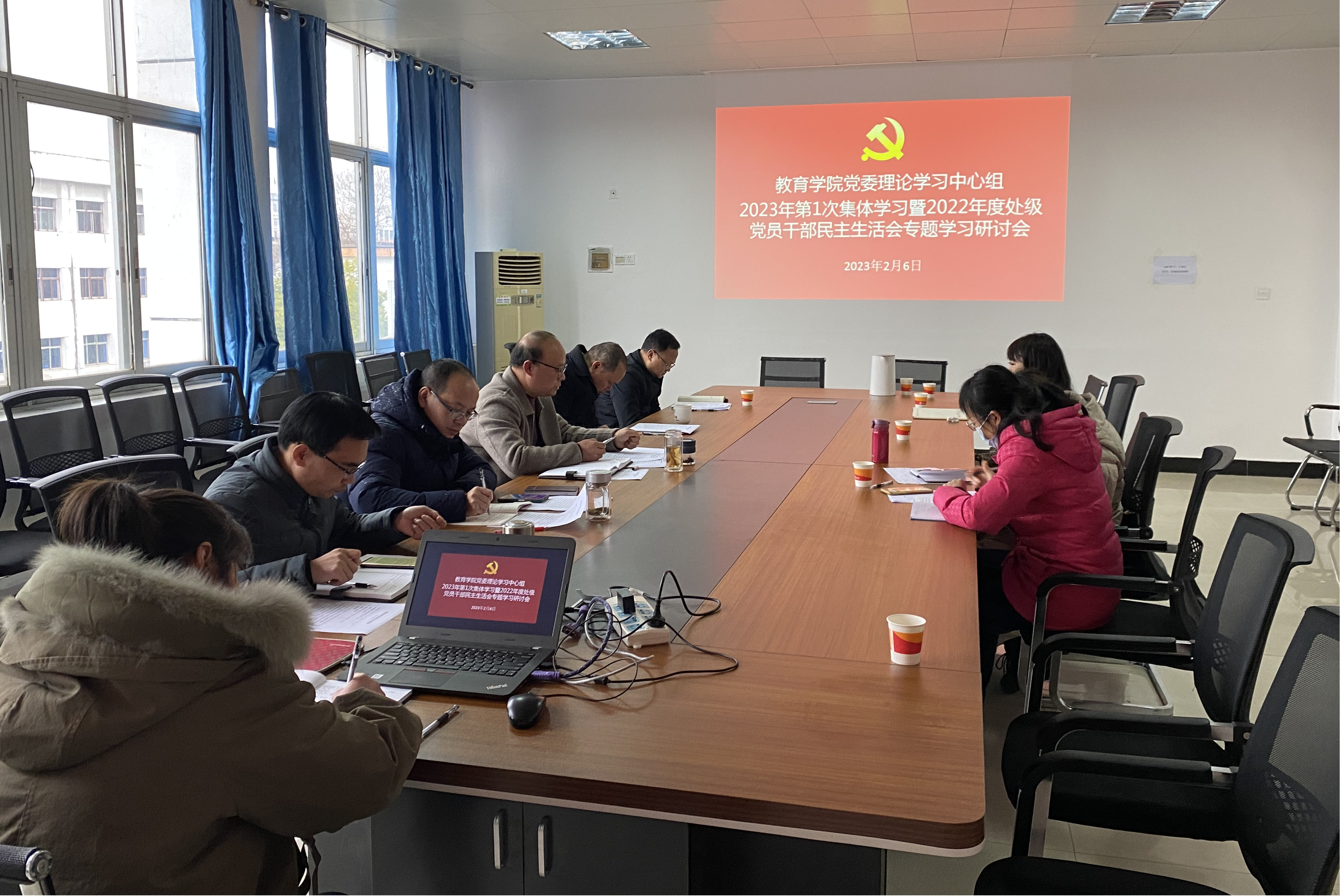 2月6日下午,教育学院召开2022年度处级党员干部民主生活会专题学习研讨会暨2023年党委理论学习中心组第1次集体学习,学院党委书记曾学锋主持并讲话,院党委班子其他成员胡忠光、梁尔铭、周光培、于文军,各科室党员负责人、各党支部书记、专职组织员参加。