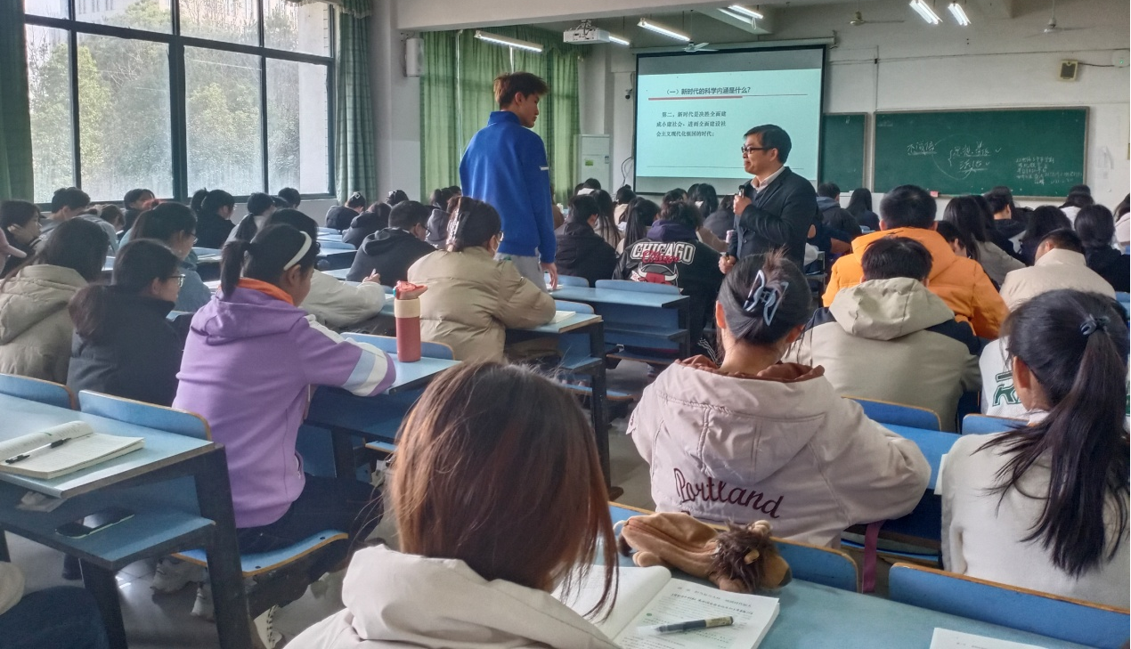 本次听课活动听取了马克思主义学院教师曾建龙为2022级应用心理学专业和小学教育专业学生们讲授的《思想道德与法治》课程。曾建龙围绕“大学生如何成为时代新人”主题,通过学生和社会关切的热点话题和现实生活具体现象,说明大学生开设《思想道德与法治》课程的原因和意义,希望新时代大学生要加强职业道德,提升法律法治素养。随后,老师通过具体案例和图文并茂的课件,重点围绕何为新时代?新时代的科学内涵是什么?新时代“新“在何处?三个问题进行教学。课堂教学中,同学们聚精会神地听课,积极参与讨论并回答问题。