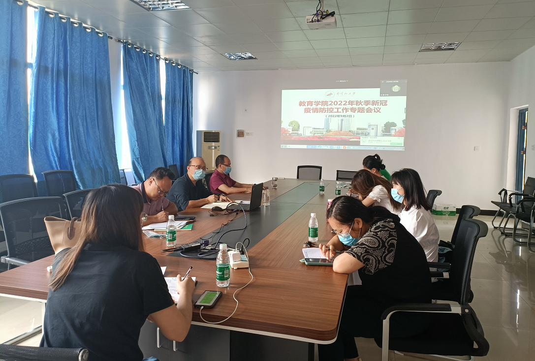 为认真贯彻落实好学校新冠肺炎疫情防控工作领导小组会议精神,推动各项疫情防控要求落实落地,切实维护学院发展平稳有序和师生健康安全,9月2日下午,教育学院以线上线下相结合的方式召开学院2022年秋季新冠肺炎疫情防控工作专题部署会,院党委书记曾学锋主持并讲话,在家院领导和科室工作人员线下参会,其他专任教师线上参加。