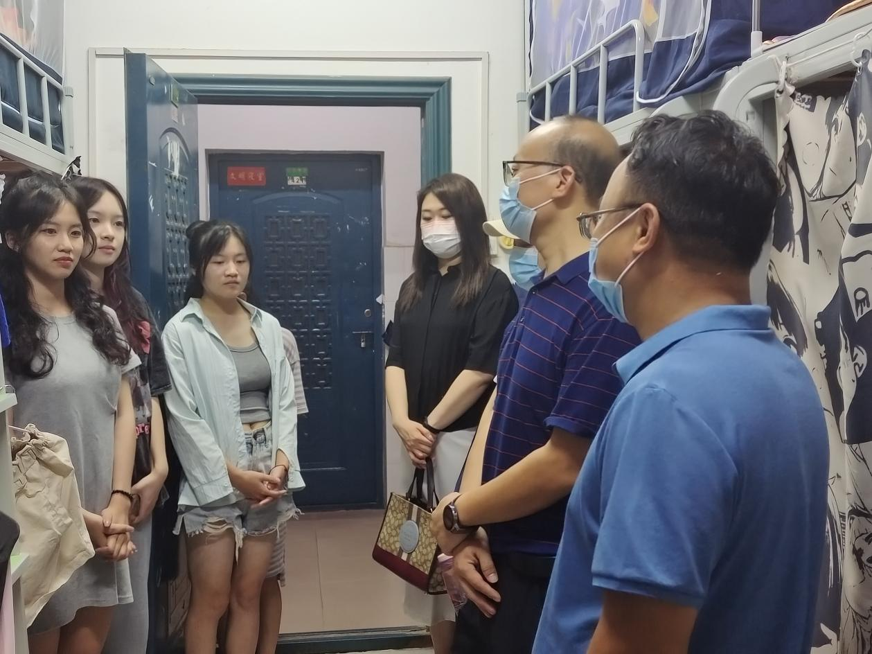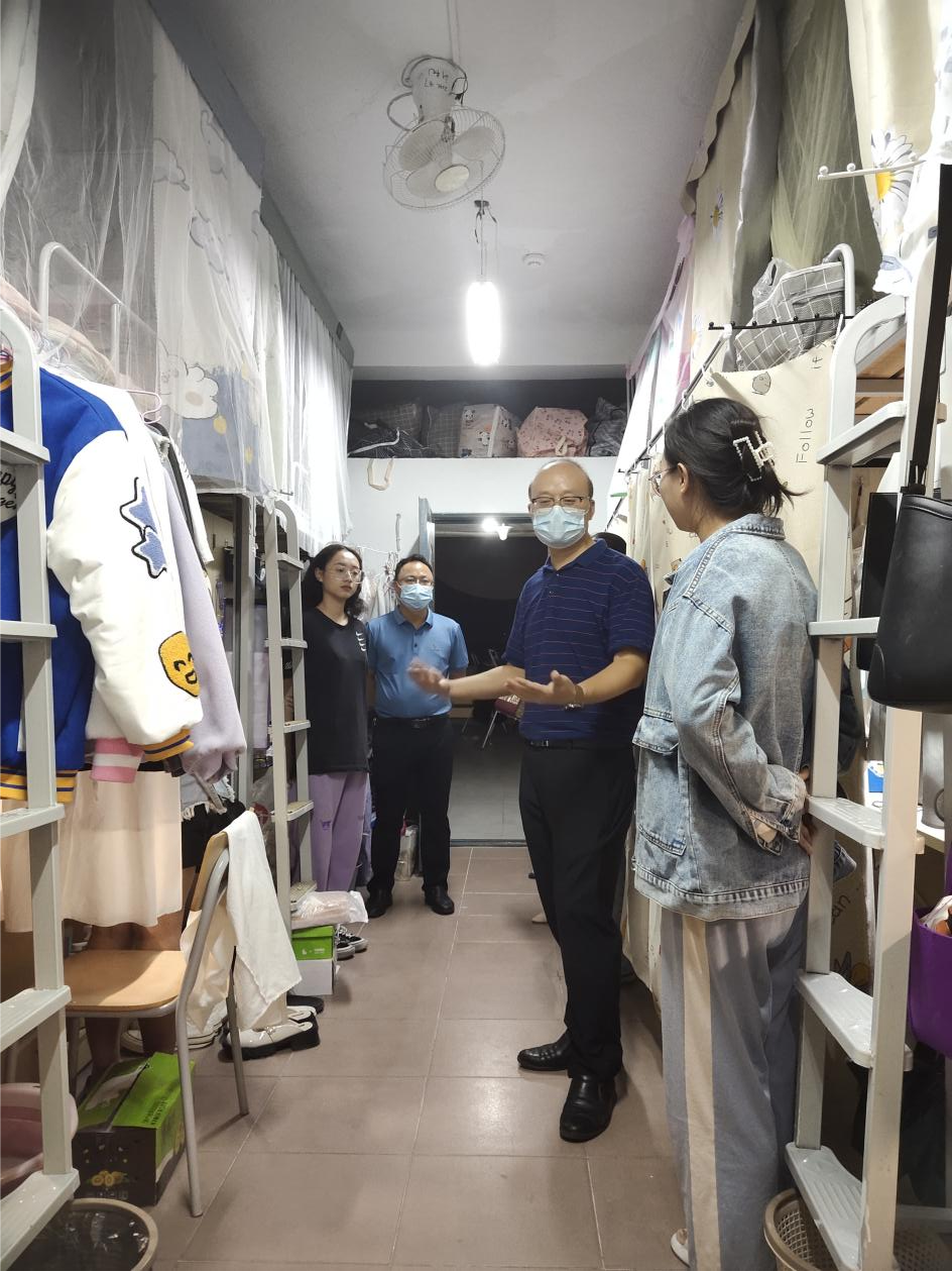 为精准了解校园封控管理期间学生学习、生活情况,掌握学生思想状况,9月5日晚,学院党委书记曾学锋、党委副书记周光培、学生科胡婷老师以及第二党支部书记金仙珠老师深入学生宿舍,走访看望在校学生,给学生们送去殷切关怀和深切慰问。