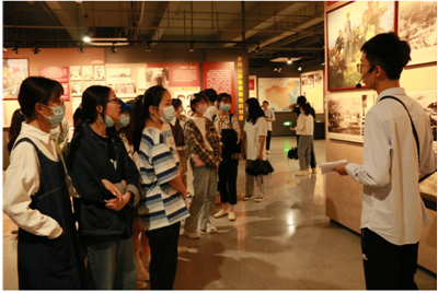 井冈山精神博物馆总面积2000多平方米,展线长度500多米。展陈内容共9个部分,各类文字和照片的展板有500多块,人物130多位,地图20余幅,各类绘画作品50多幅(其中油画30多幅)。在讲解员的引导下,同学们沿着路线,认真聆听,用心感悟。井冈山是中国革命的摇篮,井冈山斗争的伟大胜利,对中国革命道路的探索和抉择,对中国共产党和人民军队的成长具有关键意义。井冈山时期留给我们最为宝贵的财富,就是跨越时空的井冈山精神!一行行深刻的文字、一张张生动的照片、栩栩如生的人物和抗战时期的地图展现了井冈山革命根据地的辉煌历程和伟大精神。一桩桩事迹、一个个壮举、一张张图片,让大家深深地感受到中国共产党人的坚持不懈、努力拼搏、自立自强的精神。在给予同学们震撼的同时也在帮助同学们重温井冈山的革命岁月,进一步了解那段风雨如磐的革命历史,回顾“星星之火”是如何形成“燎原之势”。整个讲解过程详细生动,讲解员带领大家系统地回顾了井冈山革命斗争时期中国共产党人艰苦卓绝创造奇迹的历程,让大家体验一场深受精神洗礼的红色之旅。