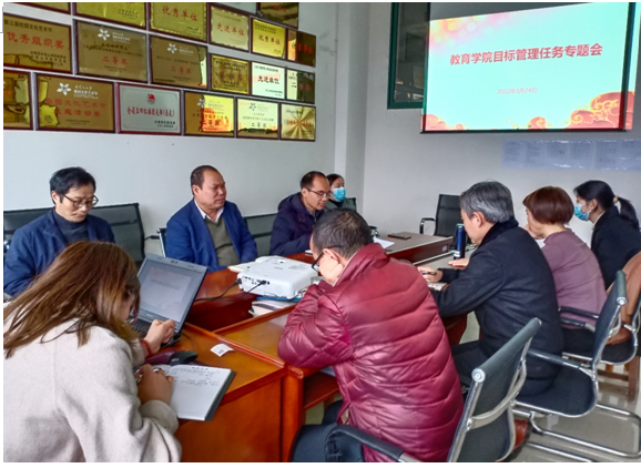 2022年3月24日下午,教育学院召开目标管理任务专题会暨专业负责人、教研室主任及专业骨干工作例会,院长胡忠光主持,副院长梁尔铭、于文军,学院各专业负责人、专业骨干及教研室主任参加会议。