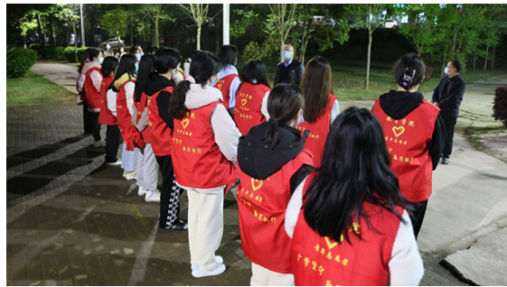 为切实筑牢校园疫情防控安全防线,加强学生安全教育管理,根据学校统一安排,2022年3月28日,教育学院组织各班学生志愿者积极参与学校南门疫情防控值班值守,院党委书记曾学锋、副书记周光培、副院长梁尔铭等院领导先后到实地看望指导。 曾学锋等院领导在看望中对深夜依然坚守岗位的学生志愿者表示慰问,感谢大家对学院疫情防控和校园安全稳定的辛勤付出,对学校值班值守的重要性作了说明,希望学生志愿者正确面对、积极参与、认真履职,展示教院学子的精神面貌和良好形象。同时,提醒大家要进一步增强对疫情防控工作的思想认识,要切实加强个人疫情防护,带头养成并遵守“戴口罩、常通风、勤洗手、一米线”的防护要求,要严格落实“非必要不离校”“未审批不入校”要求,主动配合学校疫情防控要求,做到近期网上尽量不购物、不点校外外卖、进出“图书馆、体育馆、教室、食堂”等公共场所主动佩戴口罩、测温、一米线,争做自律、守纪、文明教院人。