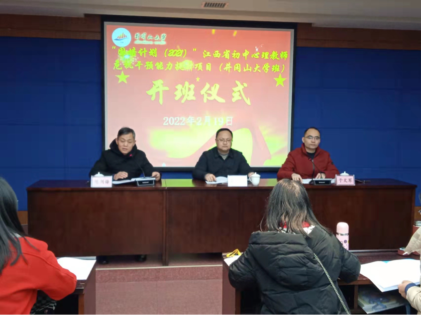 2022年2月19日上午,由教育学院承办的“国培计划(2021)”——江西省初中心理教师危机干预能力提升项目培训班在井冈山大学举行开班式。教育学院党委副书记周光培出席并作开班致辞,副院长于文军主持,培训班班主任陈剑锋老师及79名学员参加。