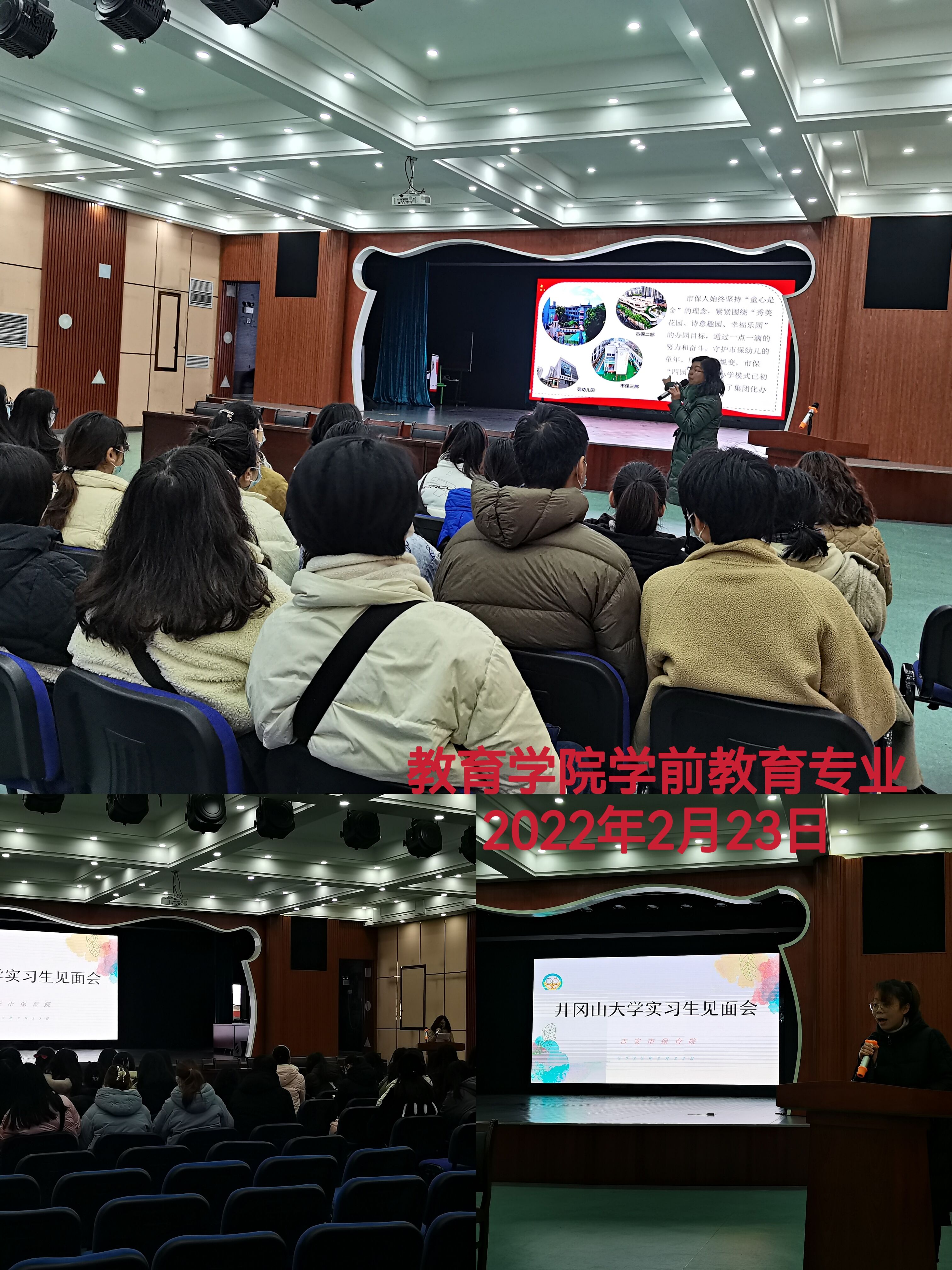 为了帮助实习生更快地融入幼儿园的学习与生活,2022年2月23日下午,在坐落于美丽的赣江之滨的吉安市保育院,井冈山大学教育学院19级学前教育专业的53名同学参加了市保精心给大家准备的实习见面会。