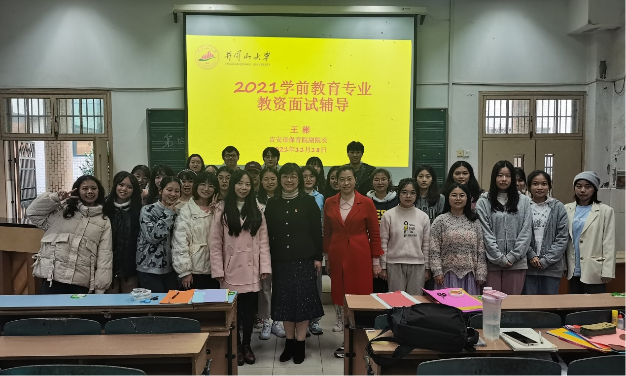 11月18日下午,在8栋B202教室举行了幼儿教师资格证结构化面试专题辅导讲座,邀请吉安市保育院王彬副院长对教师资格面试技巧进行讲解,近70名师生参加。王院长全面解读了面试的目的和基本评分标准,对于面试的六个基本流程(备考、抽题、备课、结构化问答、试讲、答辩)进行了现场模拟实训。讲座中,王院长重点分析了面试考核的基本内容(教师基本素养和教学基本技能),而通过对每一个类型的举例,让学生更加地熟悉了题型。她强调了在试讲过程中一定要审题清楚,时间要控制好,在答辩的过程中如果没听清题目一定要及时向考官反应等要注意的事项,同时还特别强调了面试的形象问题,希望考生能够着装得体,体现出年轻人的青春面貌。整个讲座笑声不断,既有现场讲故事,又有钢琴弹唱,还有无生试教,在王院长的生动的讲解中大家受益匪浅,对教师资格证面试过程中的技巧有了更加全面地掌握,相信参加教师资格证面试的同学都将取得满意的成绩。