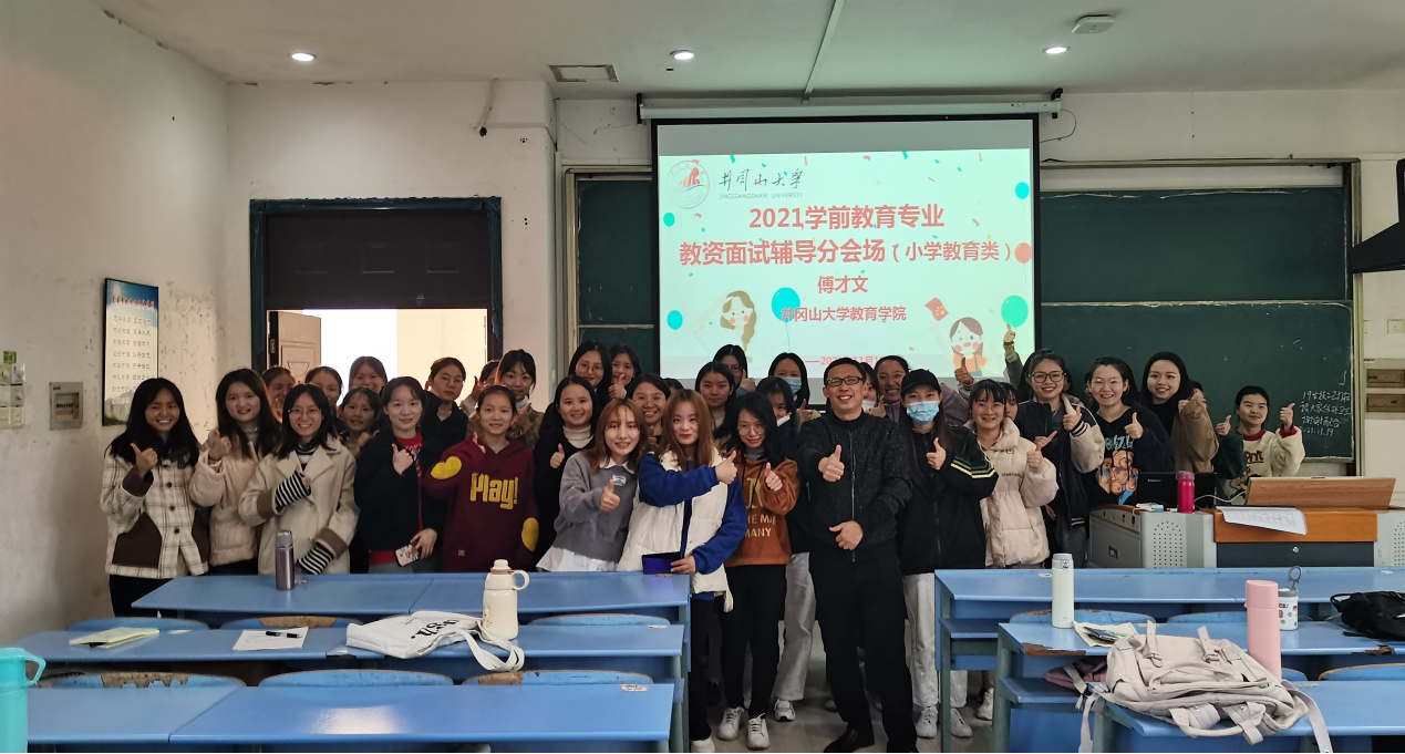 11月19日,学院傅才文副教授为学前教育专业近50名师生进行小学教师资格证结构化面试专题辅导,针对学前教育专业中积极备考小学教师资格证的同学进行现场指导。傅教授以诙谐风趣的语言,从备课、试讲、答辩及面试技巧等几个方面深入浅出地为学生讲解了小学教师资格面试有关内容、形式和程序要求,并结合丰富的真题和案例进行模拟示范。整个讲座重点突出,条理清晰,针对性强。参会学生纷纷表示,通过此次辅导他们对教师资格面试的流程有了更清晰的认识,对教师资格面试的技巧有了更全面的掌握。