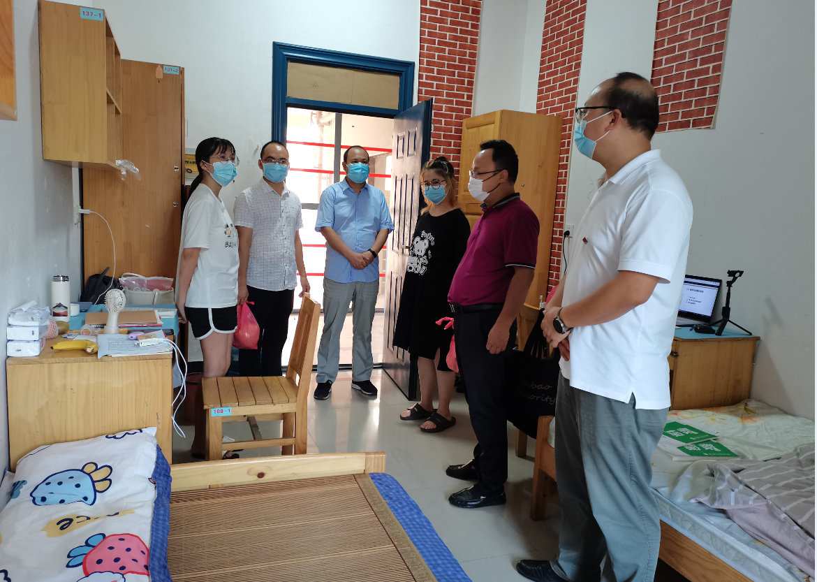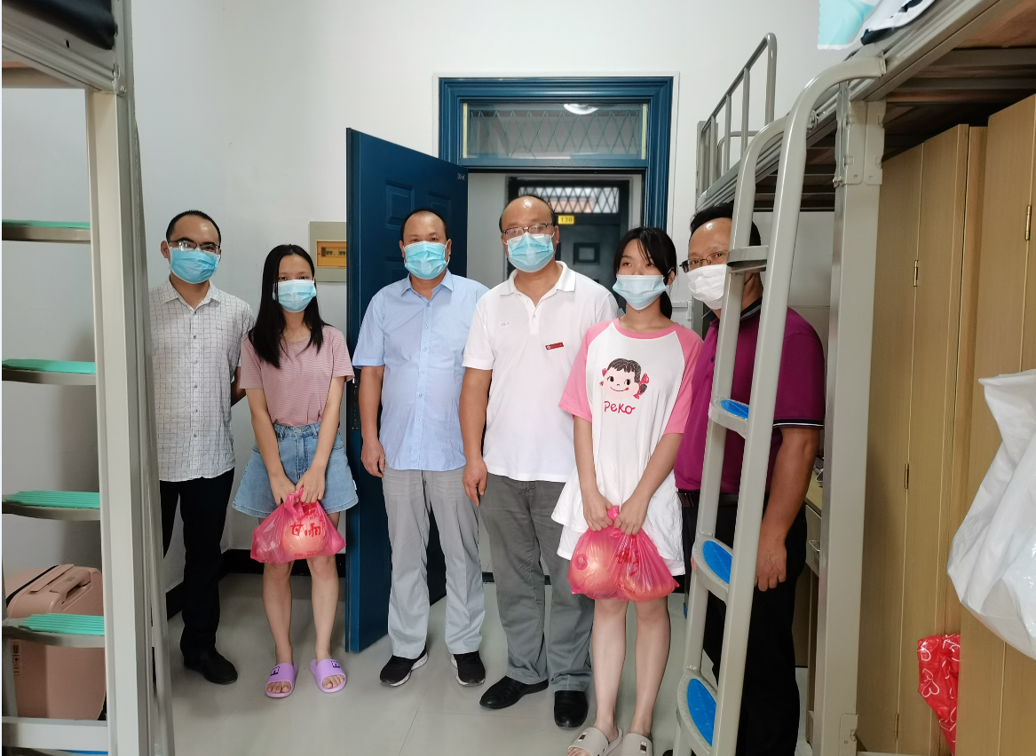 9月18日下午,正值中秋佳节到来之际,我院党委书记曾学锋、院长胡忠光、党委副书记周光培、副院长于文军,深入学校设置的疫情集中医学观察点38栋、39栋学生宿舍,走访看望慰问受疫情影响而集中医学观察的福建厦门、莆田、泉州籍等地部分学生,给同学们送上节日问候。