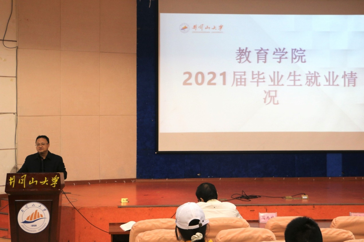 为积极推进2022届毕业生就业工作,帮助同学们树立科学理性的就业观和择业观,充分了解就业形势和就业政策,10月21日下午,教育学院在十栋教学楼学术报告厅召开2022届毕业生就业工作动员会。学院党委书记曾学锋、院长胡忠光出席并讲话,其他班子成员、2022届毕业班班主任、全体辅导员、各教研室主任以及2022届全体毕业生参加,党委副书记周光培主持。