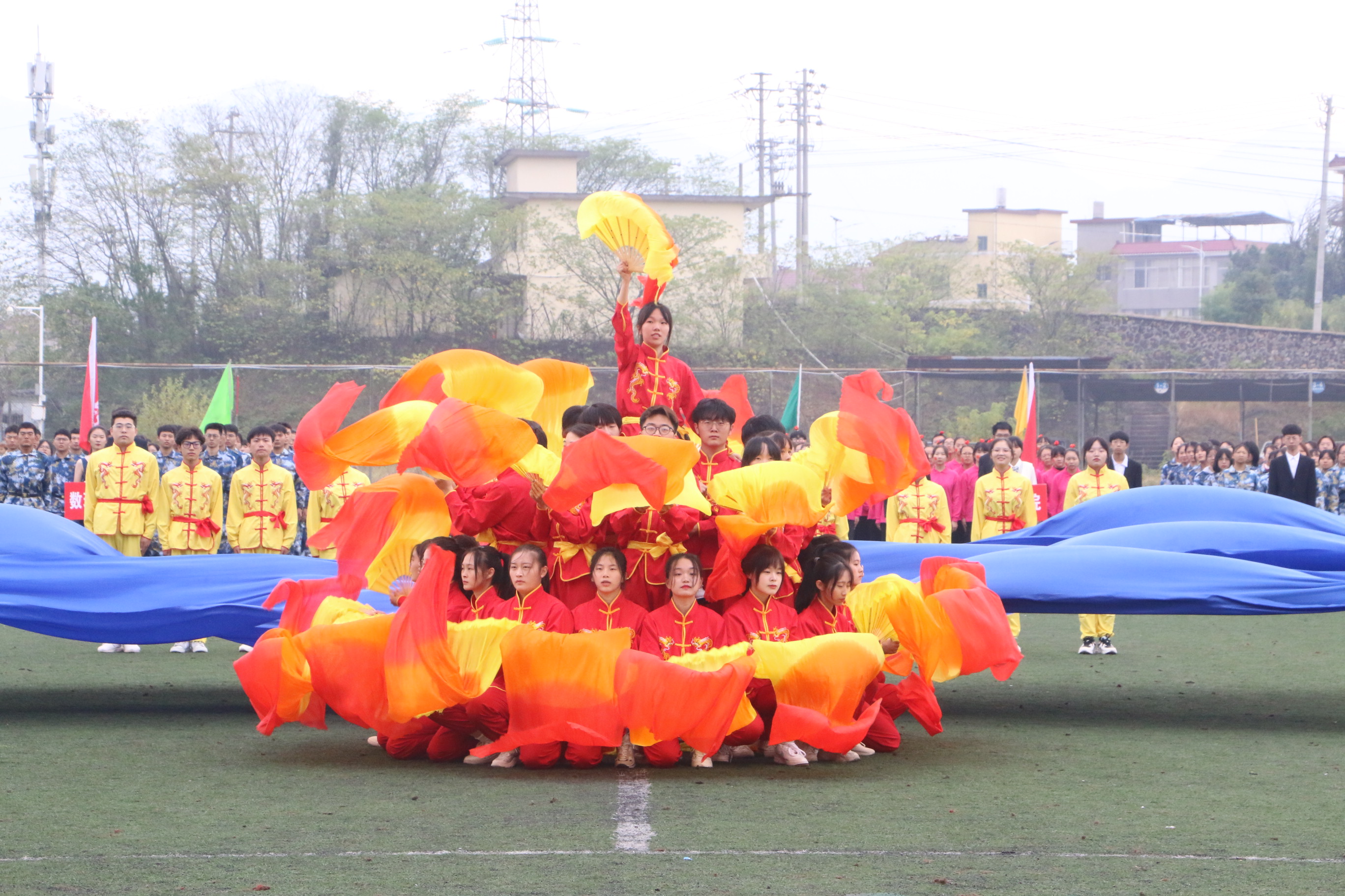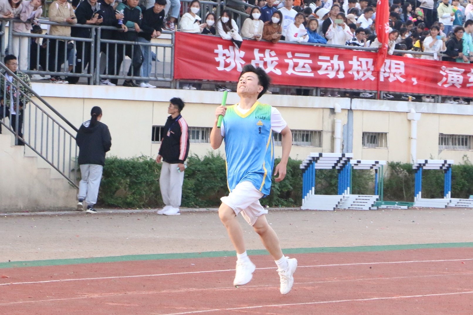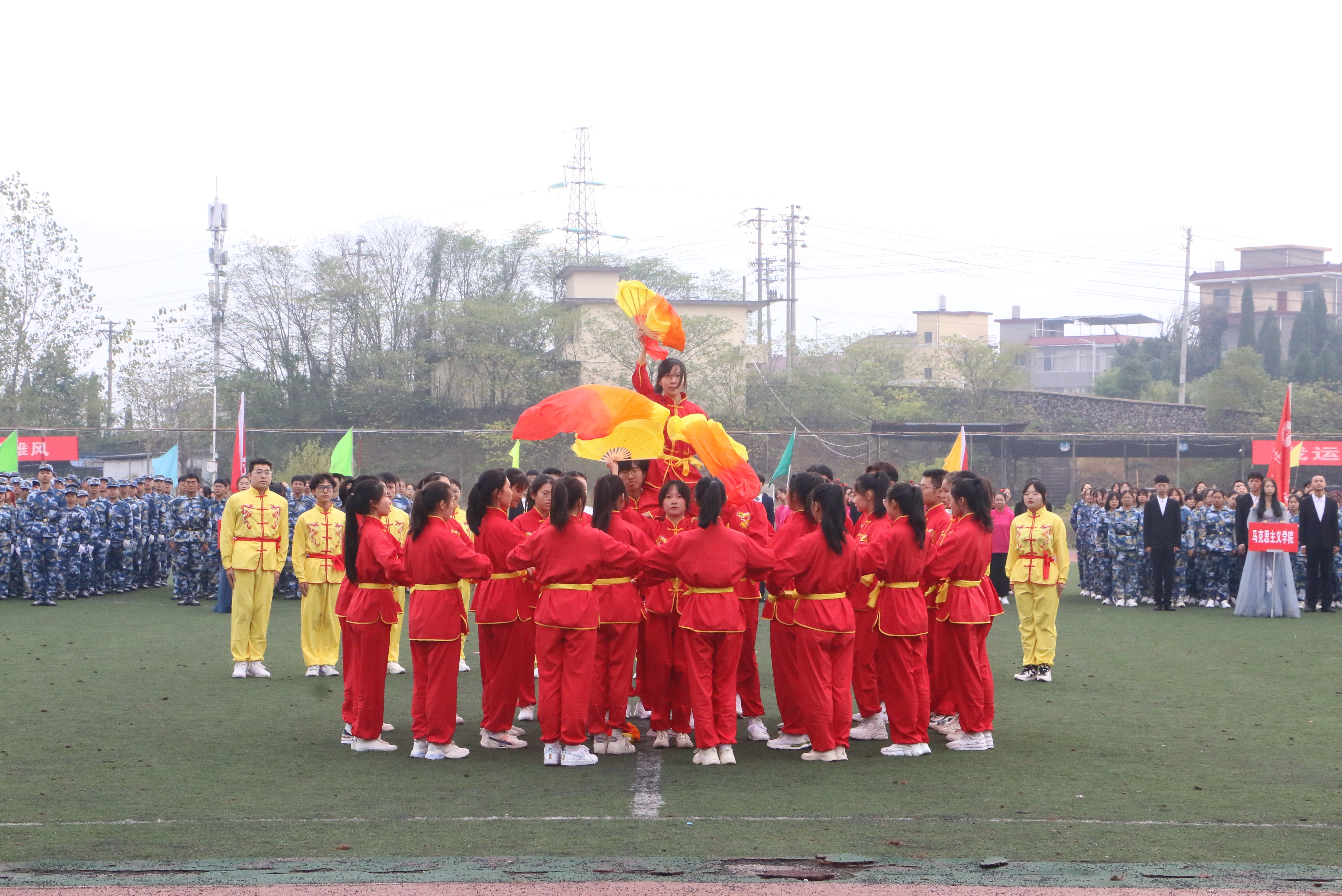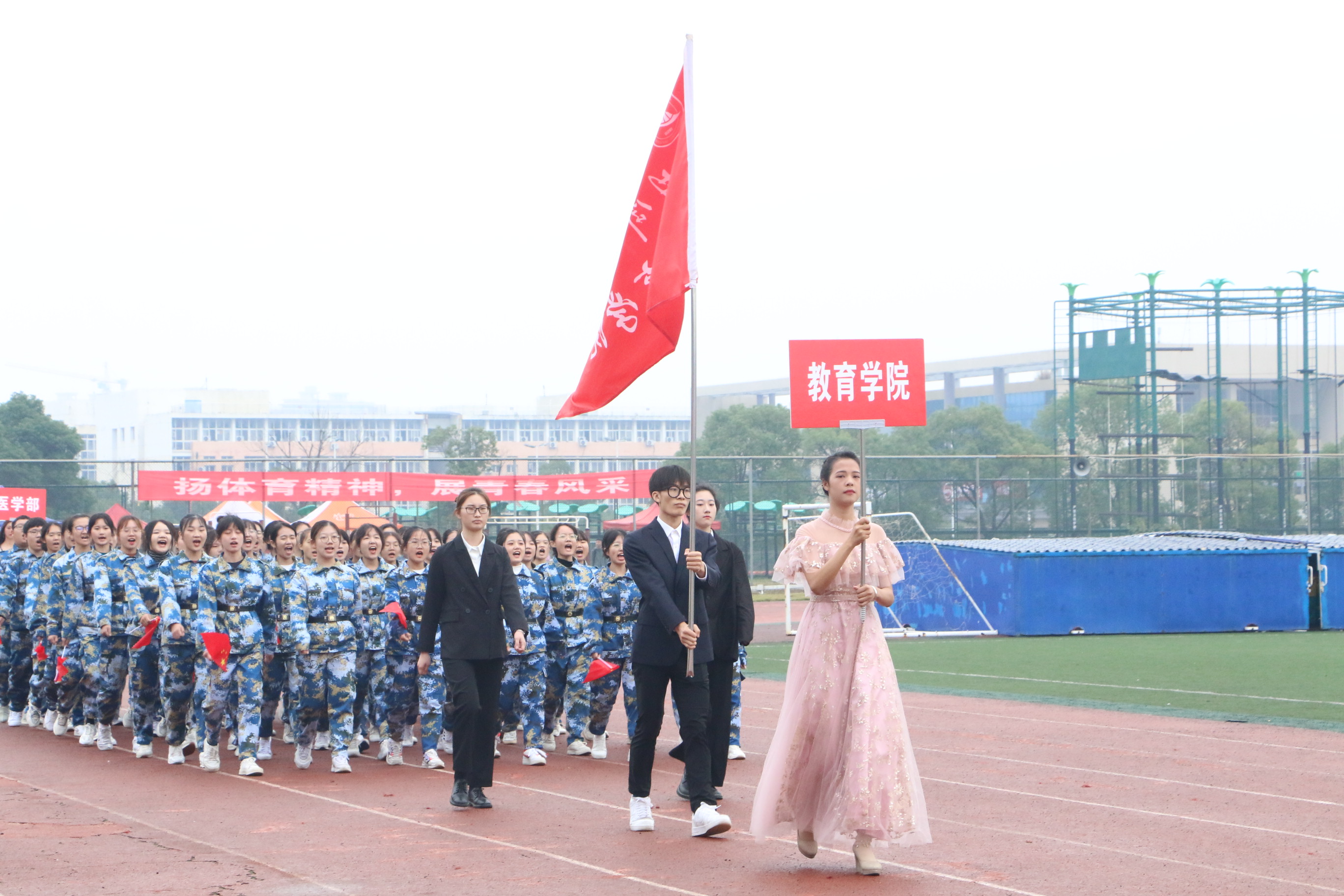 在开幕式上,教育学院方阵队踏着整齐的步伐,面带笑容、昂首阔步、展现出我院学子特有的朝气与活力,由我院21级新生代表表演的舞蹈《中国红赤子心》,通过整齐有力、协调一致的舞蹈动作展示了学院新生坚决听党话、跟党走、争当红色传人的良好精神风貌。在三天的比赛中,我院选手表现出色,犹如离弦的剑一般在赛道上驰骋与拼搏,充分展现教育学院的风采。蔚蓝的天空下有他们矫健的身影,热闹的田径场上有他们坚定的步伐,秀丽的鲜花后有他们辛勤的汗水。观众席上也是气势如虹,呐喊声、加油声,连绵不断。这声音仿佛是一种无形的力量,推动运动员奋勇拼搏,在观众们的喝彩中展现他们的自豪与骄傲!
