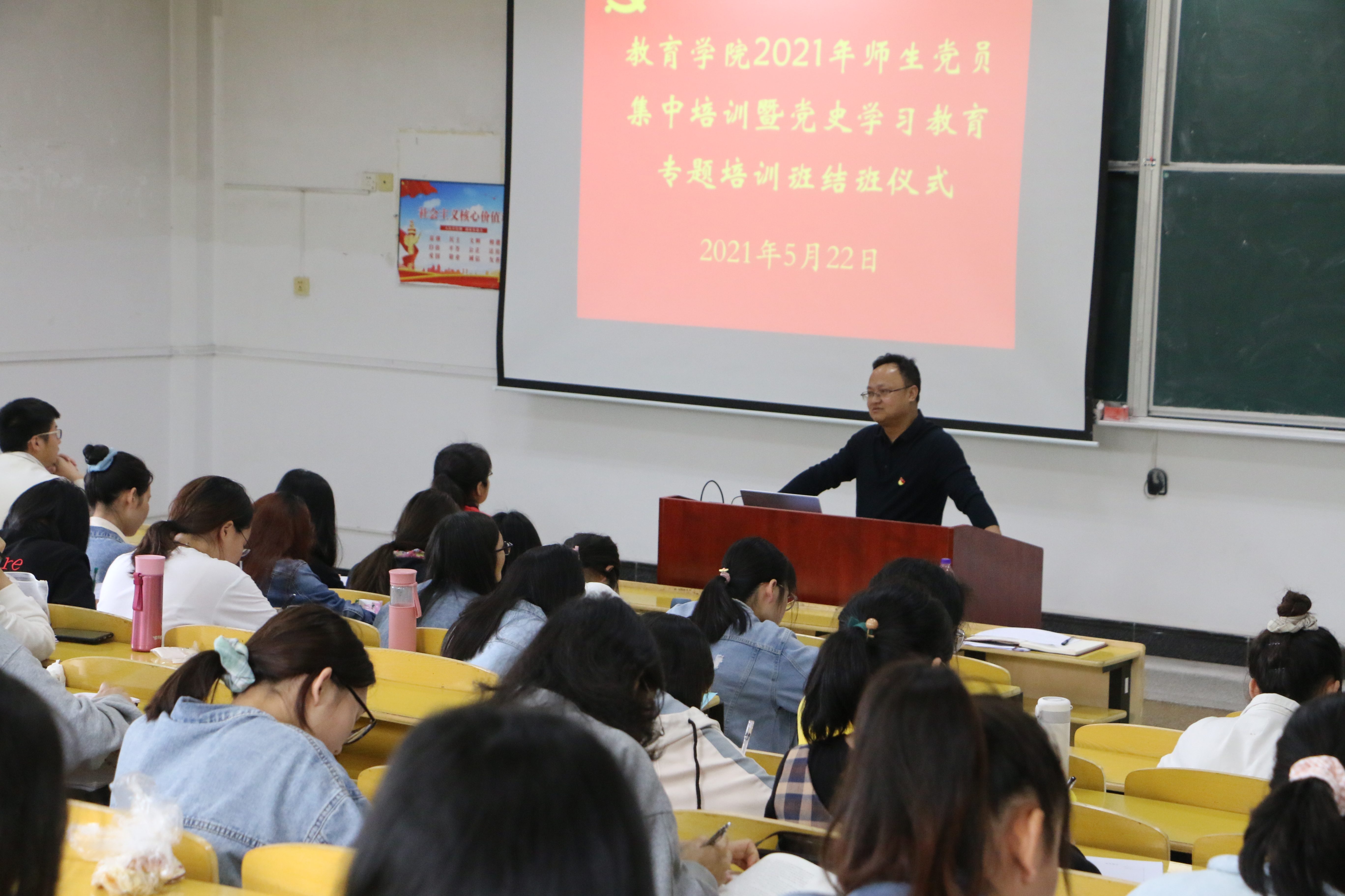 5月22日上午,教育学院2021年第1期师生党员集中培训暨党史学习教育专题培训班顺利结班。学院党委副书记周光培出席结班仪式并讲话,专职组织员余树英主持,全体学员参加。
