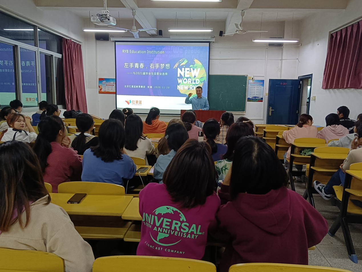 为进一步拓宽毕业生就业渠道,加强学院与企业联系对接,2020年11月20日18:00,吉安红黄蓝教育集团董事长彭涌应邀来教育学院院开展毕业生专场宣讲招聘会,学院2021届毕业生40余人参加。