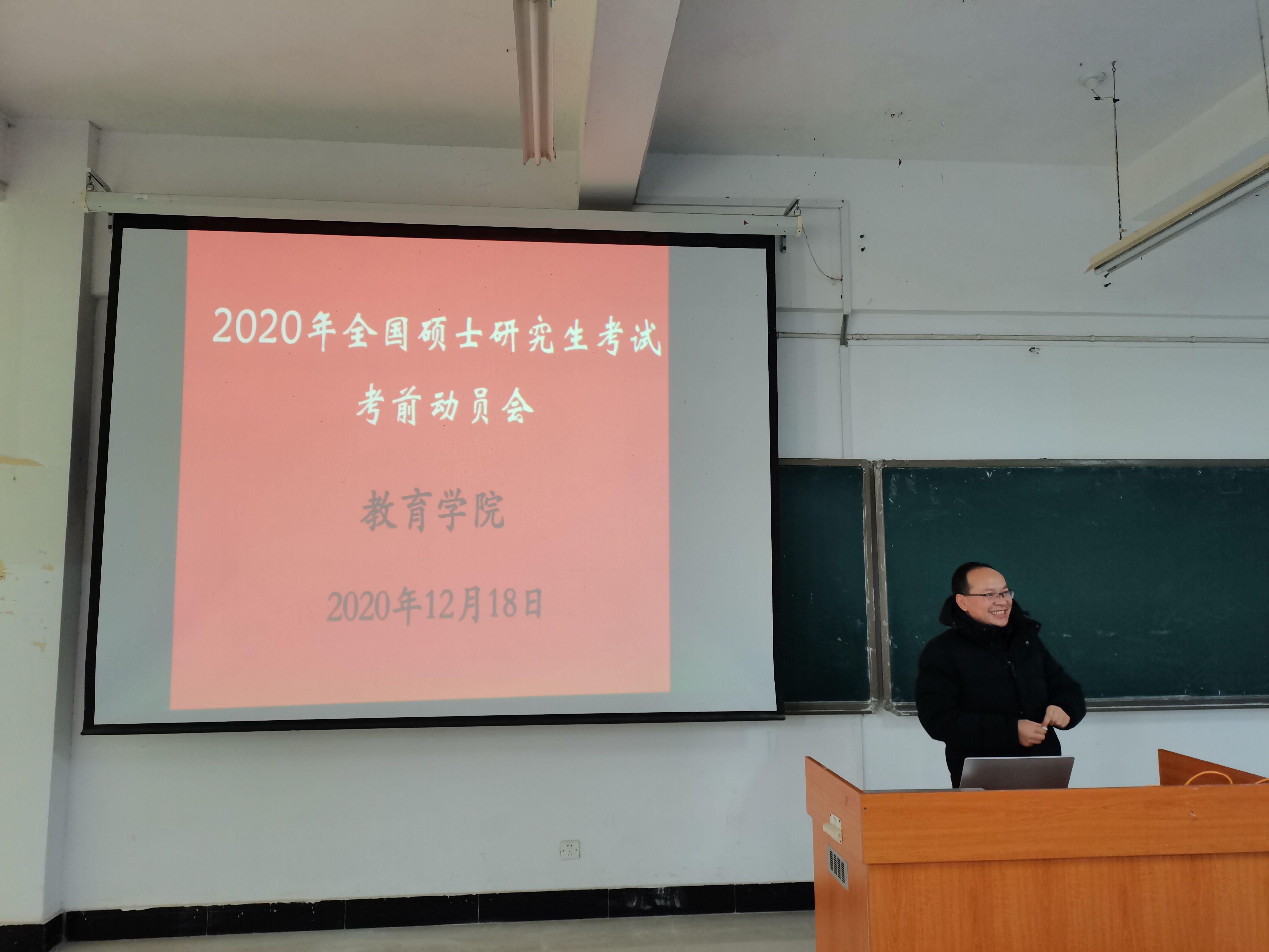 2020年硕士研究生招生考试即将拉开帷幕,为了让备考学生在考研前夕调整状态、准备充分,12月18日中午,教育学院在10栋A104教室召开2020年全国硕士研究生考试考前动员会。学院党委副书记习军明主持,副院长梁尔铭做考前辅导,团委学生科老师及2017级即将参加2020年全国硕士研究生招生考试的学生参加会议。