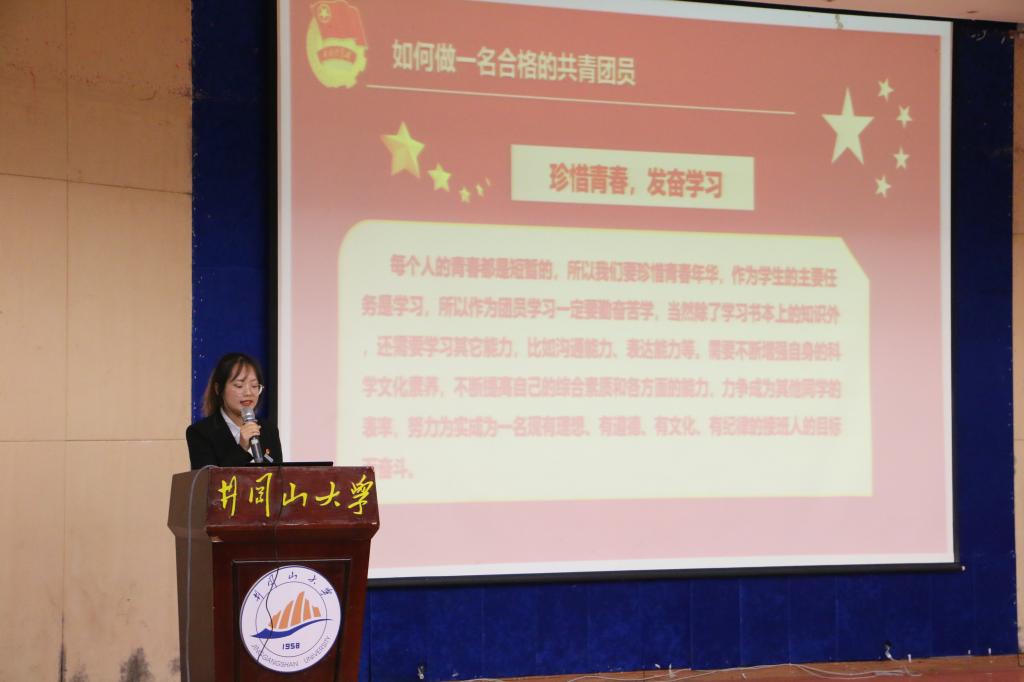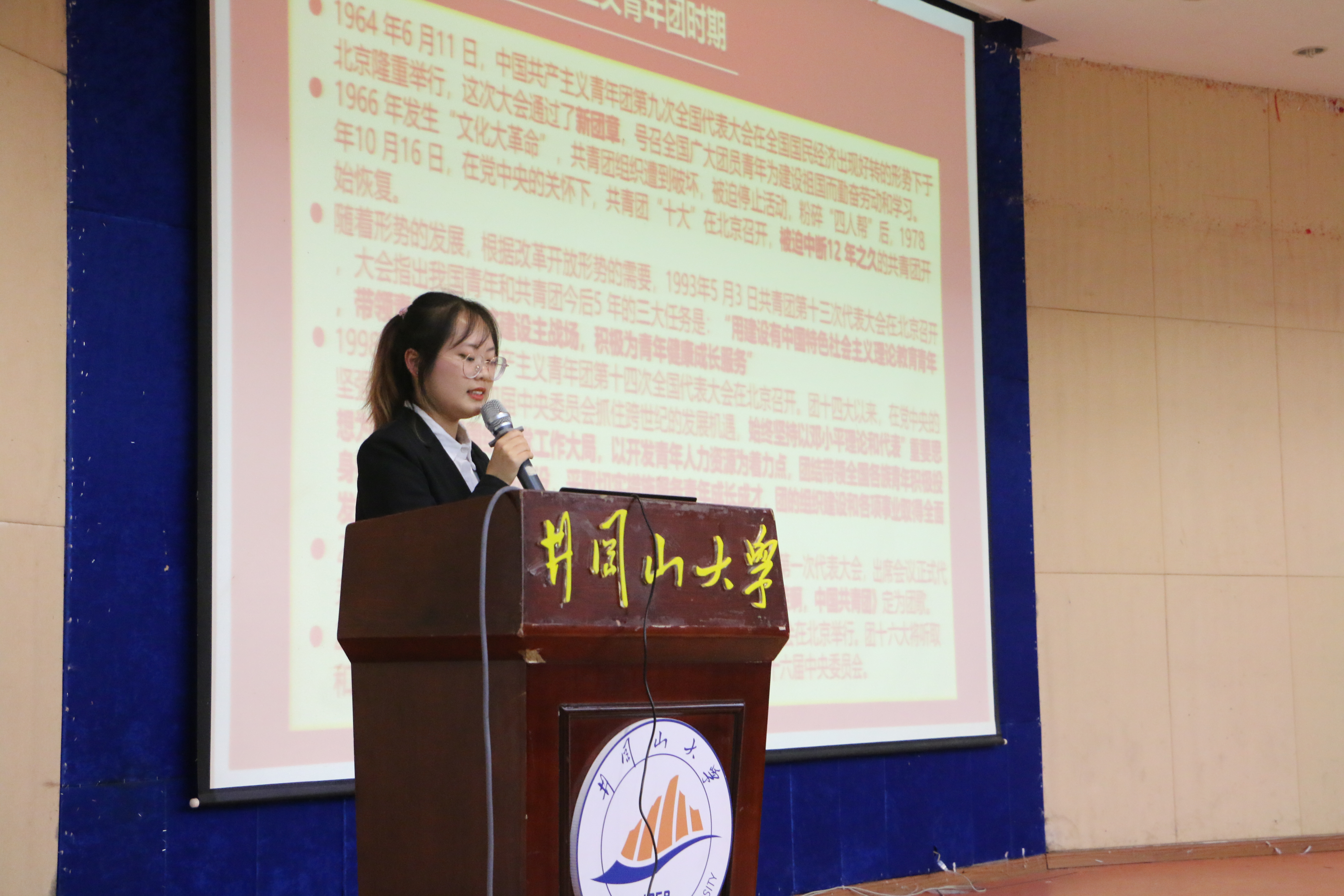 龚贇贇同学围绕《如何做一名合格的共青团员》主题,凭借丰富的课件内容和熟练的授课技巧,自信从容地向评委和观众介绍了共青团历史和知识;强调共青团作为党的后备军和助手,作为共青团员要有坚定的党性立场。