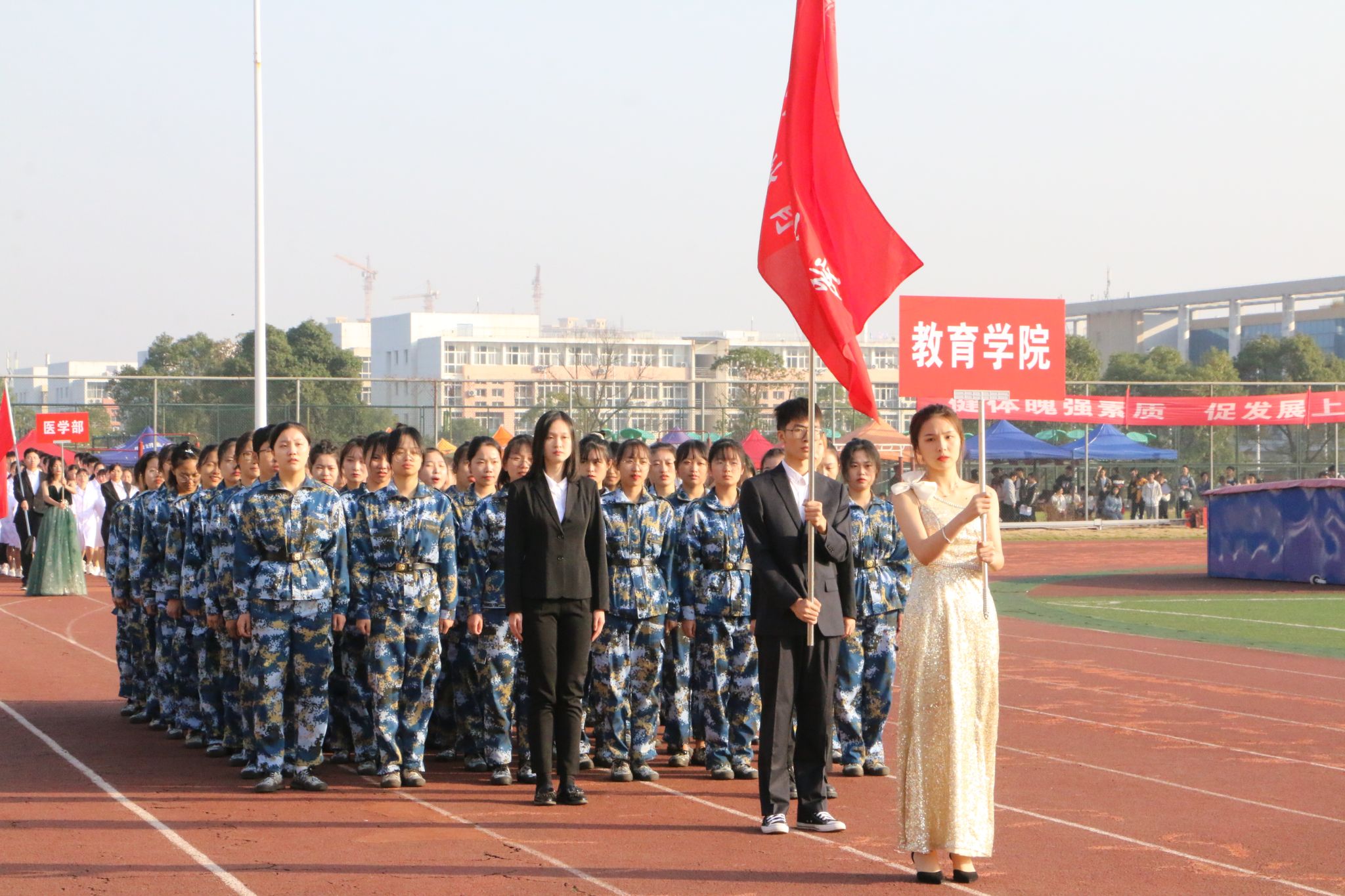在开幕式上,教育学院方阵队大放异彩,被评为“最美方阵队”。在三天的各项赛事中,我院教师率先垂范,在教师组比赛中取得多项好成绩:刘璇老师参加教工甲组女子跳远比赛获得第1名;学院党委副书记习军明参加教工丙组男子铅球和铁饼比赛分别获得第2名、第7名;党委书记曾学锋参加教工乙组男子铁饼比赛获得第4名;辅导员姜雪参加教工乙组女子跳高比赛获得第4名。在老师积极带动下,我院学生也精神振奋,龙腾虎跃,20心理班王苏梅身轻如燕,参加甲组女子跳高比赛获得第3名;20小教2班班黄盼参加甲组女子标枪比赛获得第4名;20心理班王心宇、孙宇轩在甲组男子铁饼决赛中分别获得第4名和第8名;18学前班严敏娴在甲组女子400米栏决赛中获得第6名;20小教2班杨嘉婧在甲组女子铅球决赛和甲组女子1500米决赛中分别获得第4名、第7名;18心理班谭康在甲组男子110米栏决赛和甲组男子400米栏决赛中分别获得第5名、第6名;20学前班林燕清在甲组女子5000米决赛中获得第7名;20心理徐紫璇在甲组女子3公里场地竞走决赛中获得第8名。