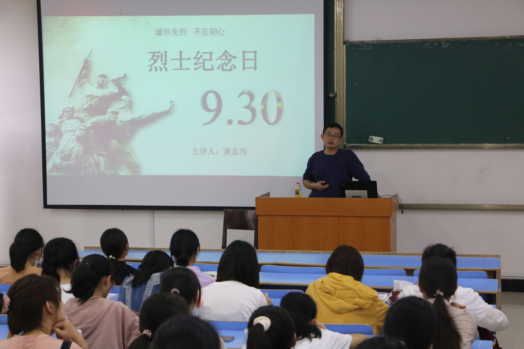9月30日是国家法定烈士纪念日。为缅怀英烈,牢记历史,当日下午院团委书记黄志兴向全体新生开展爱国主义主题宣传教育,勉励新生要牢记烈士的功绩与价值,弘扬民族正气,为复兴中华聚力。