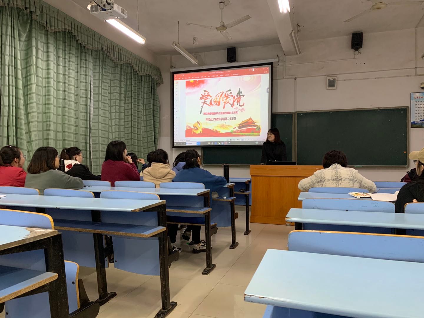 根据《党委组织部关于开展“党课开讲啦”活动的通知》要求,充分用好讲党课这一党的组织生活制度,教育引导广大党员切实增强“四个意识”、坚定“四个自信”、做到“两个维护”,自觉做习近平新时代中国特色社会主义思想的坚定信仰者和忠实实践者,10月19日晚,教育学院“党课开讲啦”举行党支部书记讲党课,学院第二党支部书记金仙珠为支部学生党员讲党课。