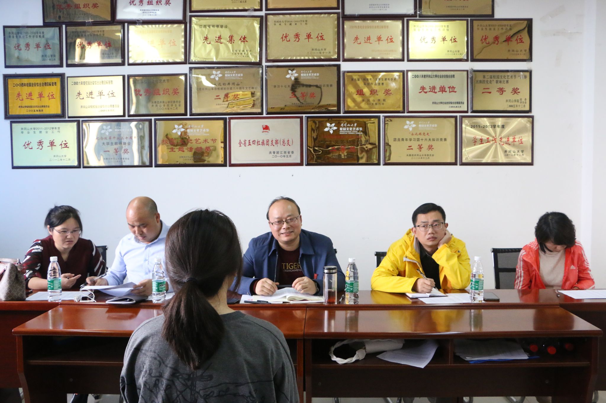 10月28日下午,教育学院在10栋D515会议室开展了第十四届团委学生会各部门负责人面试工作。本次面试由第十三届团委学生会主席团成员黄雅馨主持,学院党委书记曾学锋、党委副书记习军明、团委书记黄志兴、团委学生科余树英、姜雪老师担任评委,学院第十四届团委学生会各部门候选人26人参加竞选面试。