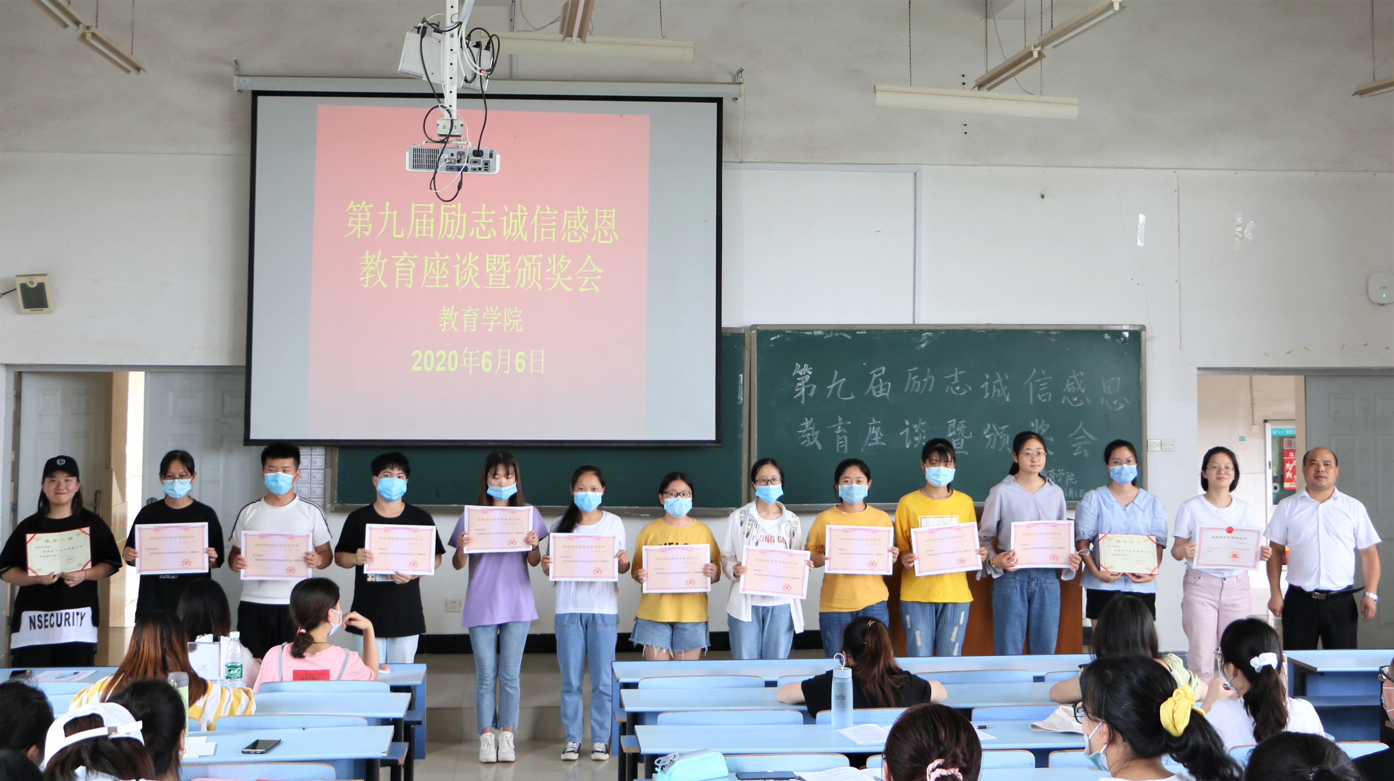 为进一步激发我院受奖励资助学生的责任担当,形成自强自立、受助感恩、励志成才、回报社会的良好风气和资助育人环境,教育学院于6月6日下午15:40召开了第九届励志诚信感恩教育座谈暨颁奖会,会议由教育学院党委副书记习军明主持,教育学院获奖同学代表、全体党员、入党积极分子参加了此次会议。