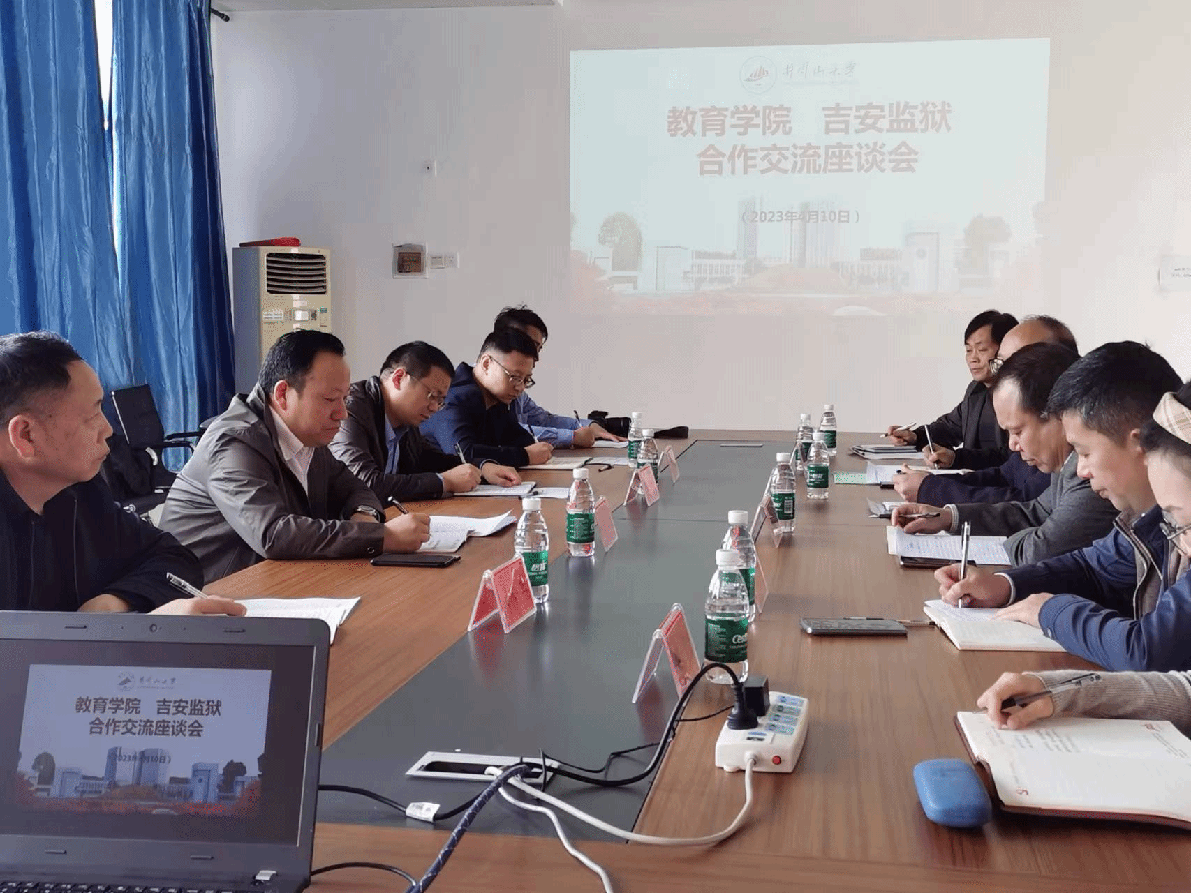 2023年4月10日上午,吉安市监狱局副局长饶斌一行来院座谈交流商讨合作共建心理健康教育与心理咨询实践基地事宜。座谈会由教育学院党委书记曾学锋主持,教育学院院长胡忠光、副院长于文军,校心理健康教育与咨询中心主任戴益信,应用心理学专业负责人罗润生、应用心理学专业骨干教师陈剑锋、学院专职辅导员胡婷参加了此次座谈会。