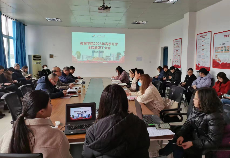 胡忠光院长从持续深入推动二十大精神学习贯彻、强化师生思想政治引领、全力提升党组织建设水平、扎实做好人才引进和师资队伍建设、做好小学教育师范专业认证整改、全力做好学科建设和科研工作、全力冲刺学院年度目标任务等八个方面对学院新学期重点工作进行安排部署。要求全院教职工要主动对标对标管理目标任务,积极认领任务,鼓足干劲调整状态,为全年工作绘好图、开好局、起好步。